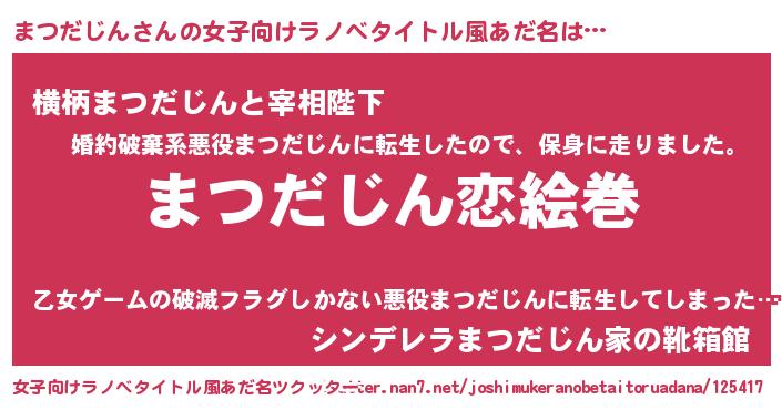 | 男性向けラノベタイトル風あだ名 | 『おまえをオタクにしてやるから、俺をまつだじんにしてくれ! 』 |