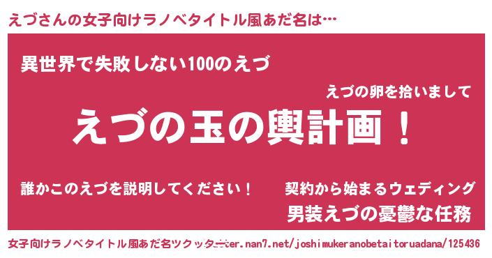 | 男性向けラノベタイトル風あだ名 | 『えづ~年齢イコール彼女いない歴の魔法使い~』 |