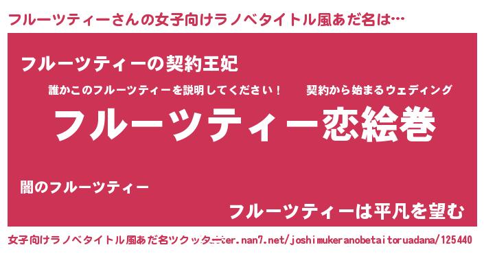 | 男性向けラノベタイトル風あだ名 | 『ノーゲーム・ノーフルーツティー』 |