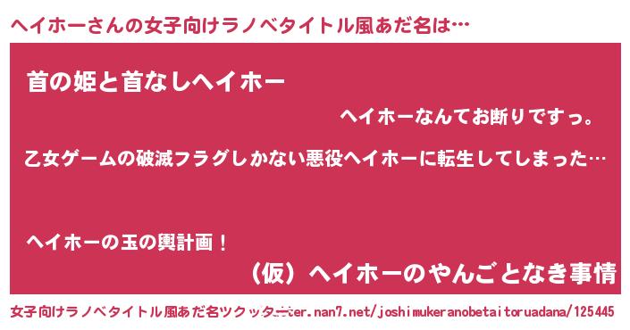 男性向けラノベタイトル風あだ名 | 『魔弾の王とヘイホー』『ヘイホーの憂鬱』 |