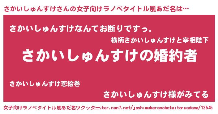 | 肩書あだ名 | 『さかいしゅんすけ総理大臣』 |
