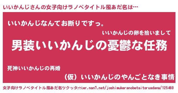 | 男性向けラノベタイトル風あだ名 | 『うちのいいかんじが世界を掌握している!』 |