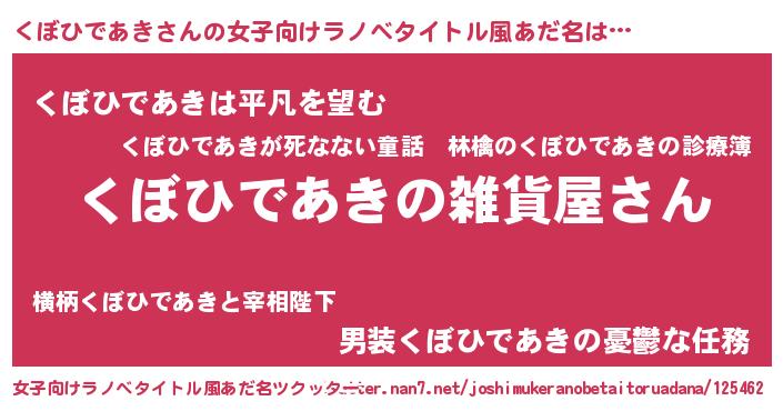| 男性向けラノベタイトル風あだ名 | 『やはりくぼひであきの青春ラブコメはまちがっている 』 |