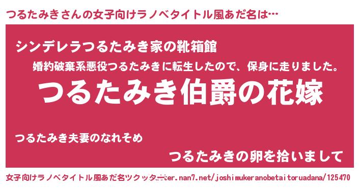 | 意味不明あだ名 | 『つるたみきフォーエバー』 |