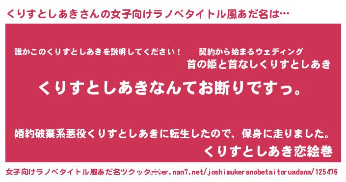 | 意味不明あだ名 | 『自称くりすとしあき』 |