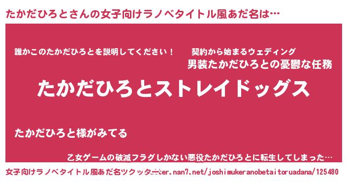 | 男性向けラノベタイトル風あだ名 | 『Re:たかだひろとから始める異世界生活』 |