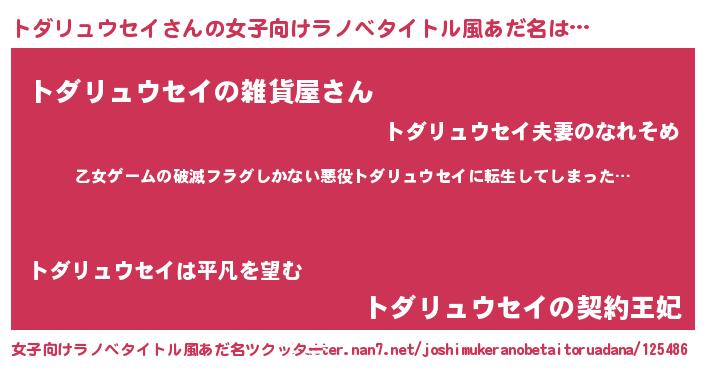 | 男性向けラノベタイトル風あだ名 | 『この素晴らしい世界にトダリュウセイを!』 |