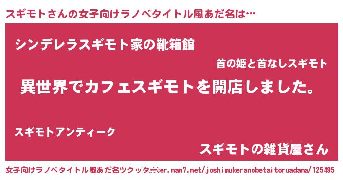 | 男性向けラノベタイトル風あだ名 | 『誰もが恐れるあのスギモトが、ぼくの専属メイドになるようです。』 |