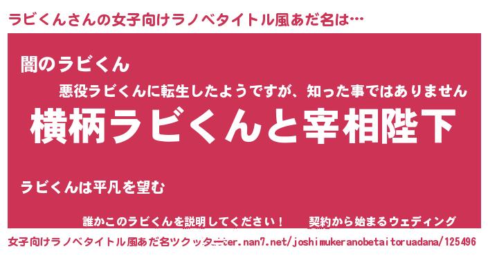 | 男性向けラノベタイトル風あだ名 | 『ラビくんに滅ぼされるだけの簡単なお仕事です』 |