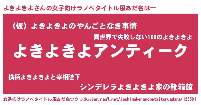 | 胡散臭い通販商品みたいなあだ名 | 『テレビで話題のアガリクス…その名も「よきよきよ」』 |