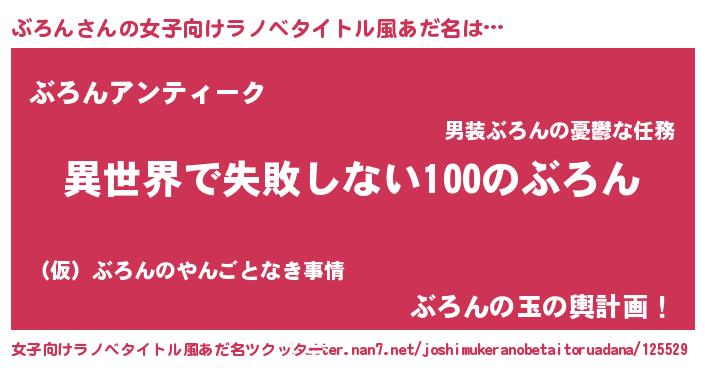 | 男性向けラノベタイトル風あだ名 | 『ぶろんという概念が存在しない退屈な世界 』 |