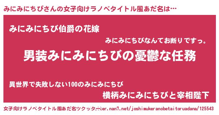 | 意味不明あだ名 | 『みにみにちびフォーエバー』 |