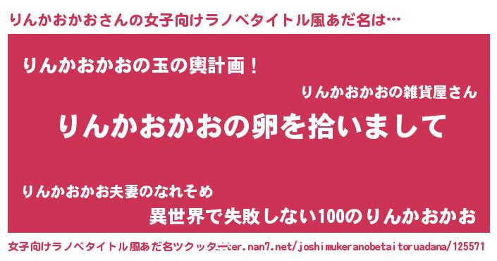 | 男性向けラノベタイトル風あだ名 | 『りんかおかおの嫁は女の子じゃないと思った?』 |