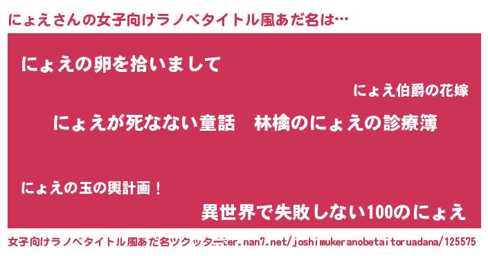 | 男性向けラノベタイトル風あだ名 | 『魔弾の王とにょえ』 |
