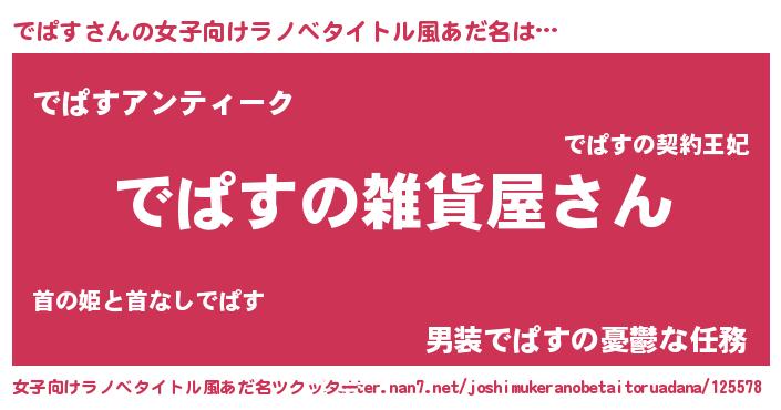 | ファンタジー風あだ名 | 『エターナルデパスー』『ゼデパトゥ』 |