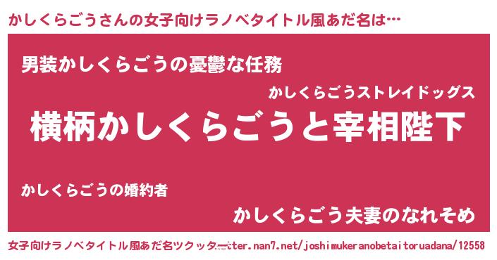 | 男性向けラノベタイトル風あだ名 | 『かしくらごうに滅ぼされるだけの簡単なお仕事です』 |