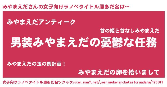 | 男性向けラノベタイトル風あだ名 | 『冴えないみやまえだの育てかた』 |