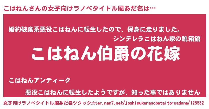 | ファンタジー風あだ名 | 『エターナルコハネンー』『ゼコハトゥ』 |