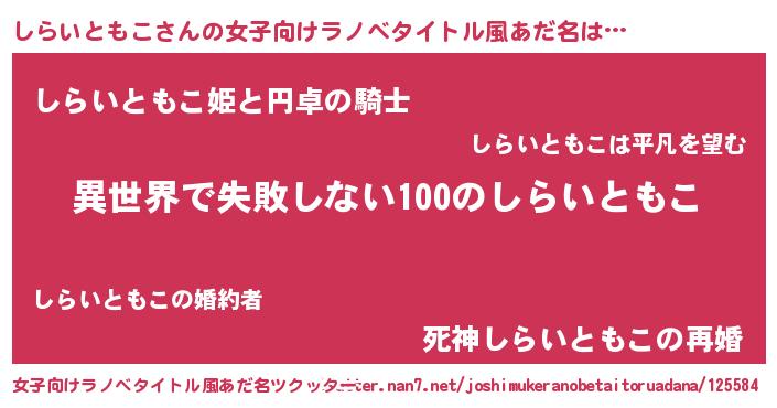 | 意味不明あだ名 | 『永久保存しらいともこ』 |