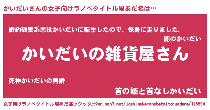 | 意味不明あだ名 | 『かいだいフォーエバー』『自称かいだい』 |