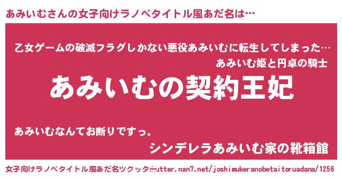 | 胡散臭い通販商品みたいなあだ名 | 『来世でも幸せになれる水素水…その名も「あみいむ」』 |