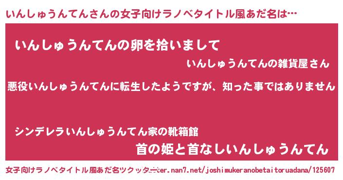 | 男性向けラノベタイトル風あだ名 | 『この素晴らしい世界にいんしゅうんてんを!』 |