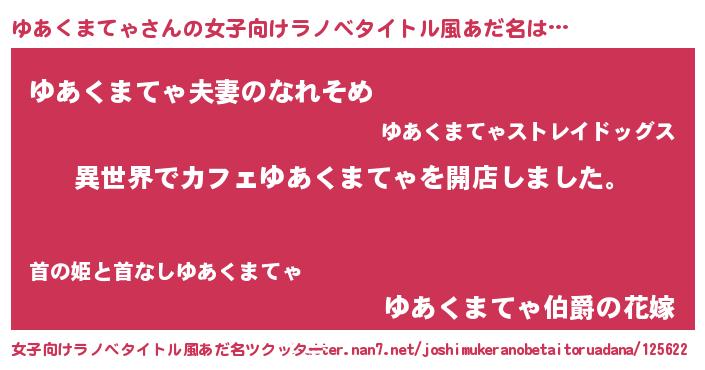 | 男性向けラノベタイトル風あだ名 | 『誰もが恐れるあのゆあくまてゃが、ぼくの専属メイドになるようです。』 |