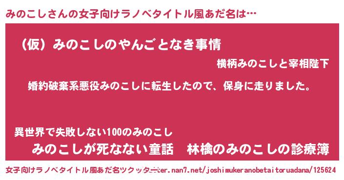 | 男性向けラノベタイトル風あだ名 | 『ミノコシスレイヤー』『みのこしの憂鬱』 |