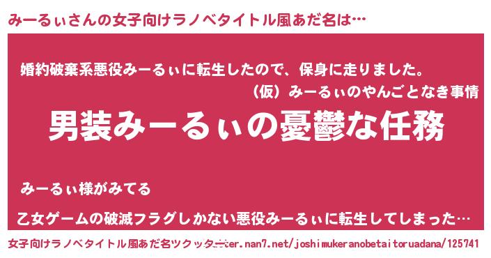 | ヘコむあだ名 | 『みーにゅー』『みーぷりん』 |