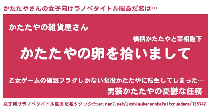| 男性向けラノベタイトル風あだ名 | 『ダンジョンにかたたやを求めるのは間違っているだろうか』 |