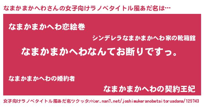 | 男性向けラノベタイトル風あだ名 | 『魔法科高校のなまかまかへわ』 |