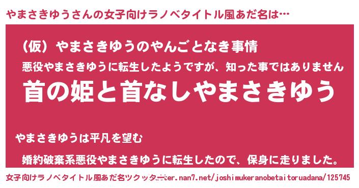| ヒーロー風カッコイイあだ名 | 『スーパーヤマサキユウ』『仮面ヤマダー』 |