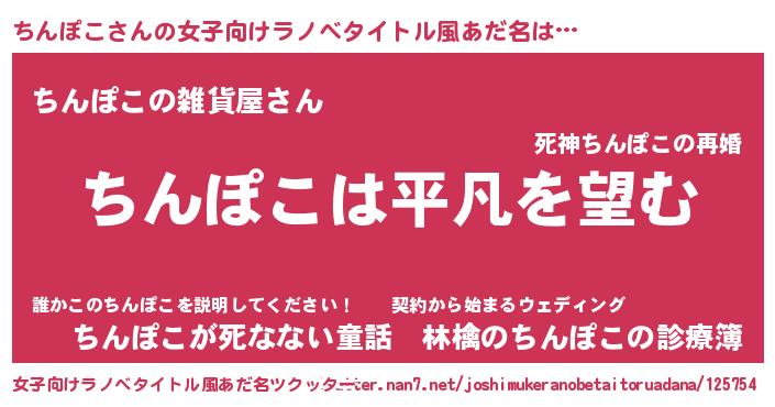 | 胡散臭い通販商品みたいなあだ名 | 『信頼と実績のペンダント…その名も「ちんぽこ」』 |