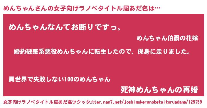 | 胡散臭い通販商品みたいなあだ名 | 『テレビで話題のアガリクス…その名も「めんちゃん」』 |