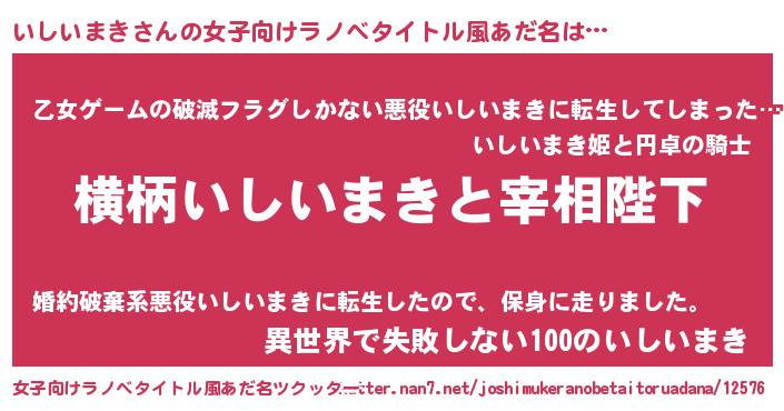 | 男性向けラノベタイトル風あだ名 | 『いしいまきに滅ぼされるだけの簡単なお仕事です』 |