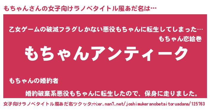 | 胡散臭い通販商品みたいなあだ名 | 『テレビで話題のアガリクス…その名も「もちゃん」』 |