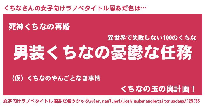 | ヒーロー風カッコイイあだ名 | 『慈愛の使者くちな』『ネオクチナ』 |