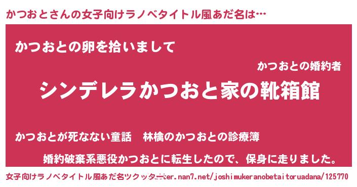 | 男性向けラノベタイトル風あだ名 | 『冴えないかつおとの育てかた』 |