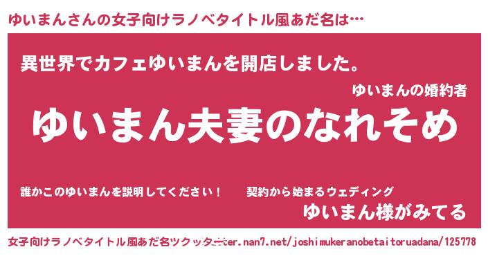 | 男性向けラノベタイトル風あだ名 | 『おまえをオタクにしてやるから、俺をゆいまんにしてくれ! 』 |