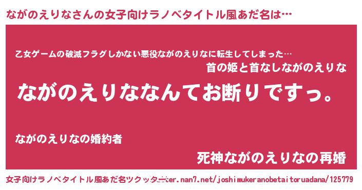 | 男性向けラノベタイトル風あだ名 | 『魔法科高校のながのえりな』 |