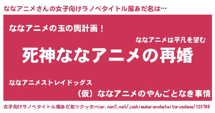 | 男性向けラノベタイトル風あだ名 | 『ノーゲーム・ノーナナアニメ』 |