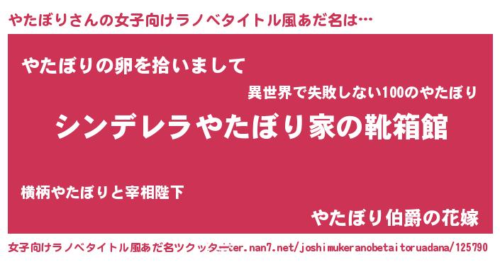 | 胡散臭い通販商品みたいなあだ名 | 『信頼と実績のサプリメント…その名も「やたぼり」』 |