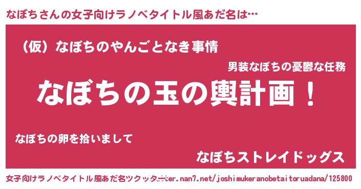 | ヒーロー風カッコイイあだ名 | 『スーパーナボチ』『超時空戦士ナボチ』 |