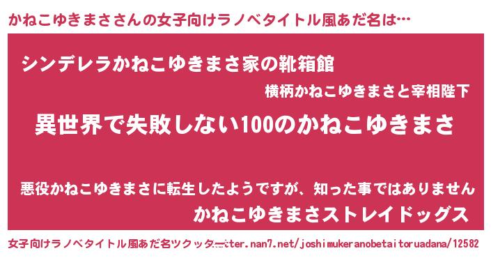 | 意味不明あだ名 | 『永久保存かねこゆきまさ』 |