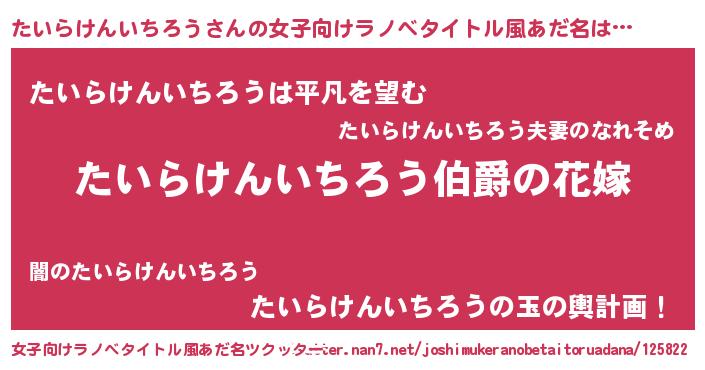 | 意味不明あだ名 | 『たいらけんいちろうフォーエバー』 |