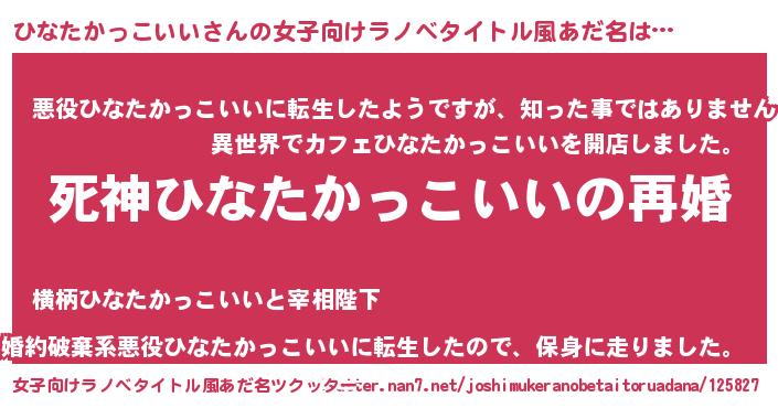 | 男性向けラノベタイトル風あだ名 | 『ノーゲーム・ノーヒナタカッコイイ』 |