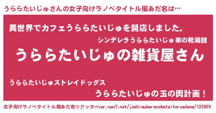 | 男性向けラノベタイトル風あだ名 | 『やはりうららたいじゅの青春ラブコメはまちがっている 』 |