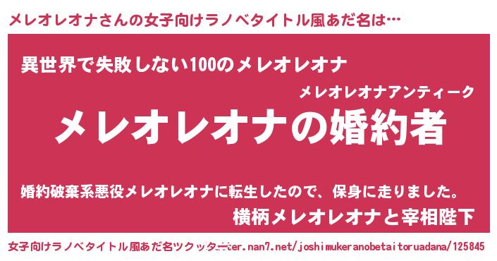 | ファンタジー風あだ名 | 『エターナルメレオレオナー』 |
