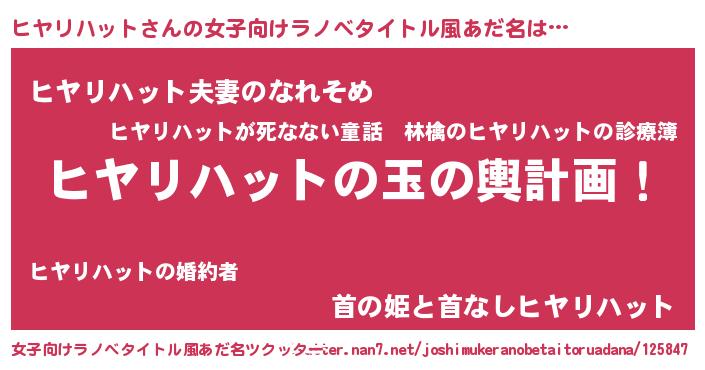 | 可愛いあだ名 | 『ヒヤぷりん』『ヒヤちゅっちゅ』 |
