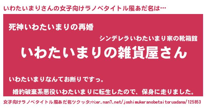 | 胡散臭い通販商品みたいなあだ名 | 『幸せが訪れる高級そうな絵画…その名も「いわたいまり」』 |